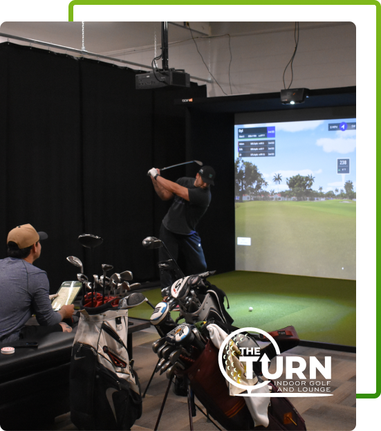 Tee up the excitement at The Turn Indoor Golf and Lounge, your premier destination for indoor golfing fun. Enjoy year round entertainment with our state-of-the-art simulators, inviting lounge atmosphere, and delicious selection of food and drinks. Whether you’re a seasoned golfer or simply looking for a good time, we’ve got you covered!